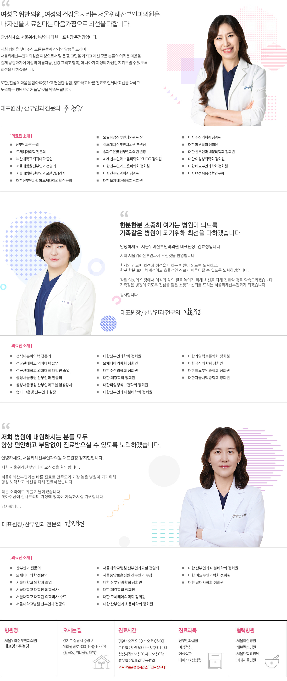 서울위례산부인과의원 대표자 주정경 사업자등록번호 299-40-00528 대표전화 031-758-7001